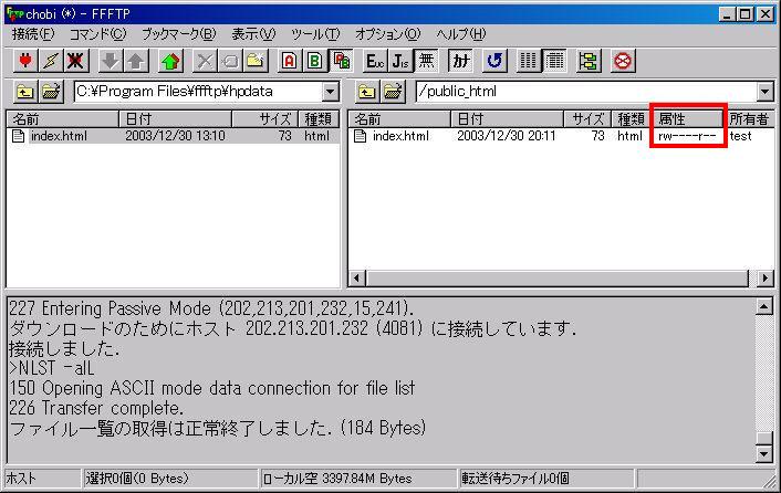 rwx rwx rwx の3つのブロックに分けることができます。 1→所有者 2→グループ 3→その他 をあらわしており、下の場合 rw----r-- rw- --- r-- 所有者に rw グループにはなし その他に r 権限があることになります。