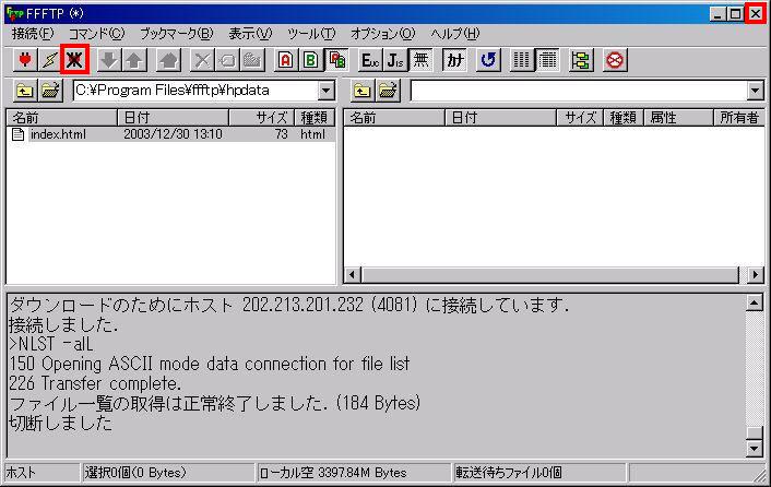 切断を行い、閉じるボタンを押します。